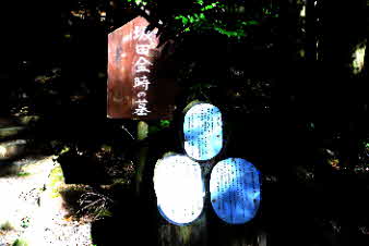 万願寺の東端に到着すると、坂田金時のお墓があった。金太郎は、足柄山で熊と相撲を取る剛力だったそうだ。「足柄山の金太郎、熊にまたがり、お馬の稽古・・・」の歌で知られている。 |