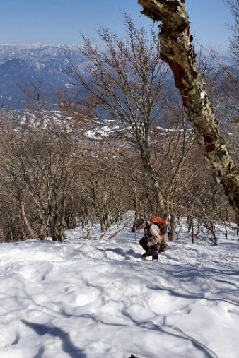 野坂岳へ急斜面を登る |