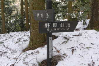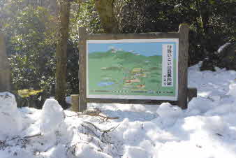 | 野坂いこいの森でタクシーを降り、登山準備をして出発。早速、急な雪道を登り始める。 登山口から18分ほどで渡渉する。その先尾根方向に登ると、探鳥路分岐になり、「野坂岳山頂へ2時間20分」と記されていた。現在10時20分、果たして山頂に休憩を入れて13時ごろには登頂できるだろうか。 |