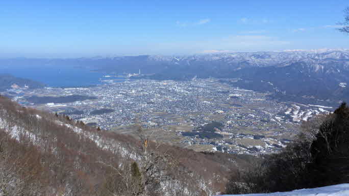 敦賀市街と白山方向を望む 12:43 一ノ岳辺り(標高790m) |