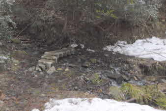 | 野坂岳からほゞ下り、川にU字のブロックを並べたところを渡渉した。溝に使うブロックを上下逆さまにして、橋にする考えは面白い。 |
