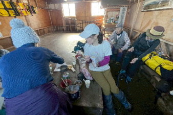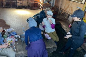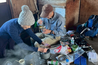 | リーダーさん特製のぜんざいをみんなでおいしく頂いた。こんなところでいただく、ぜんざいは格別だ。重い食材など持ち上げていただいてありがとう。 |