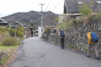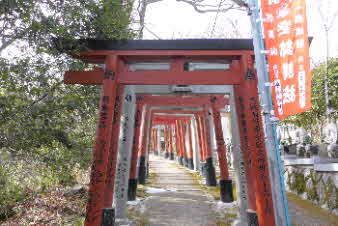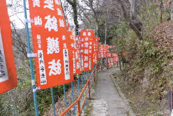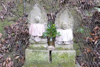 | 両脇にお地蔵さまが続いている。お地蔵様は、水飲み地蔵院まで33ヶ所、66体続いているそうだ。 |