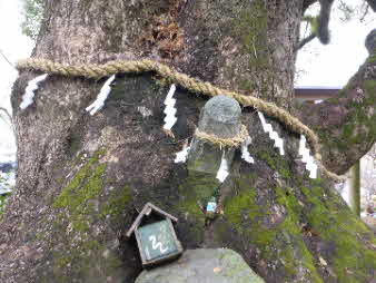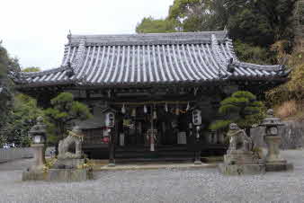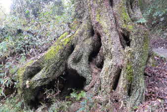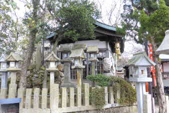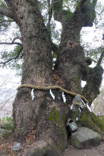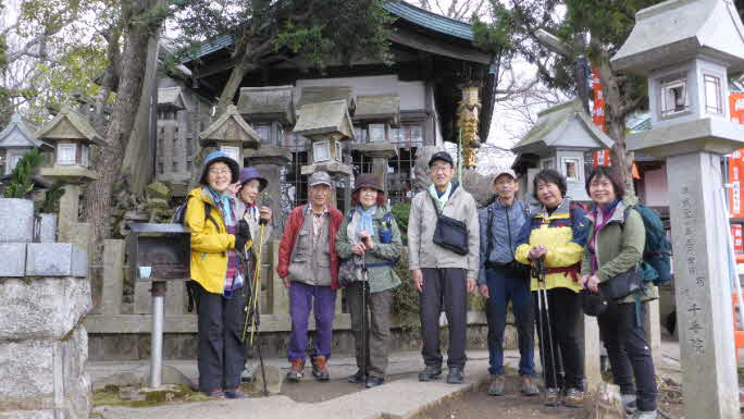 | 2月28日、友歩会定例会で十三峠・高安山・信貴山を縦走した。良い天気を期待したが、曇空の縦走になった。 近鉄服部駅から、八尾市歴史民族資料館前を通り、少し先から右折し山方向へと歩いた。広かった道も次第に細道になり、悩みかけると、道標があり先へと進めた。 道標に従って登りきると、鳥居を覆うような楠が見え、玉祖神社(たまのおやじんじゃ)に到着した。 |