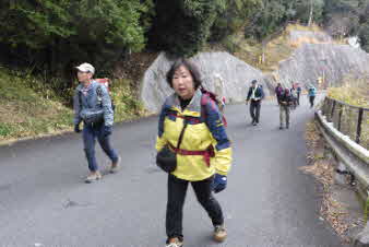 | 山頂取付きまで広い道を戻り、信貴山へと移動を開始した。少し進んで下ると、スカイラインになり、横断して先に進む。 |