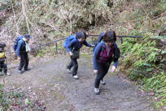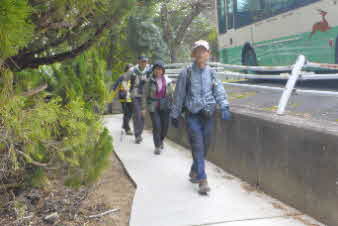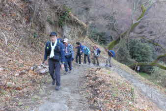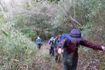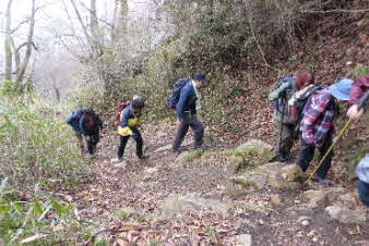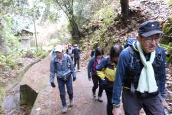 | かなり疲れたのでバスでもと思ったが、歩くことにした。ケーブル跡のハイキング道を下った。疲れているので結構厳しかったが予定通り無事信貴山下駅に全員無事下山した。 少し厳しい縦走コースだったが。15年前はすいすいと行けたのだが、やっぱり厳しいようだ。でも、年相応のコースを頑張って踏破しようではありませんか。頑張ろう! |