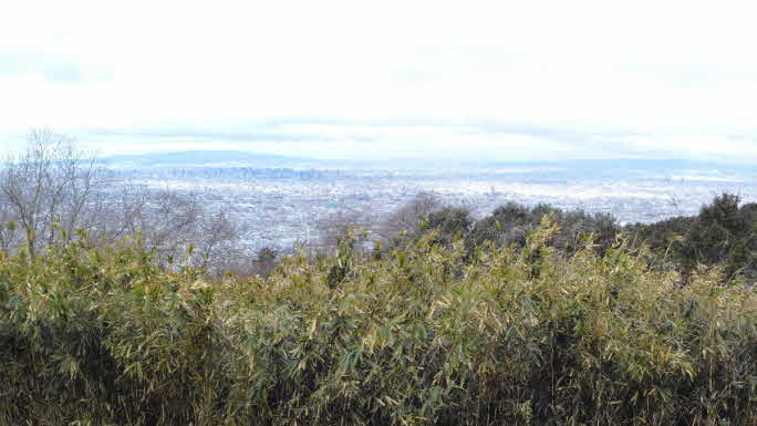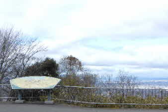| 十三峠から35分ほどで立石越分岐を通過する。そして5分程進むと、スカイラインと並行になり、立石越Pでベンチなどもある。 景色もいいだろうと、クルマを確認して道を渡った。曇空のせいか期待したほどのパノラマは見られなかった。北の端に生駒山山上が見えていたのが印象的だった。 |