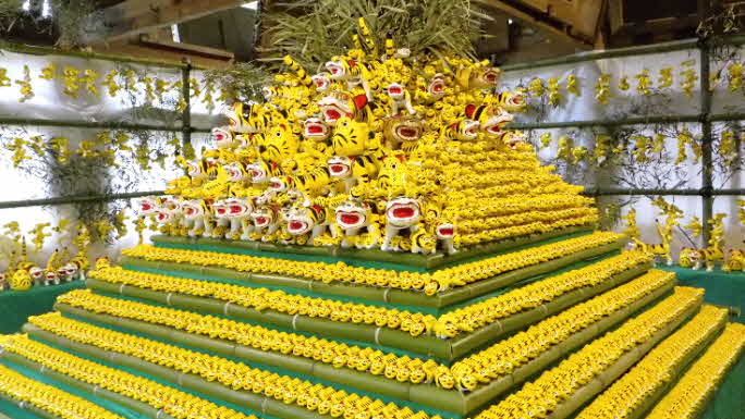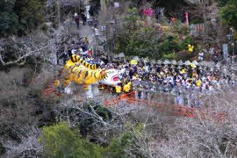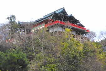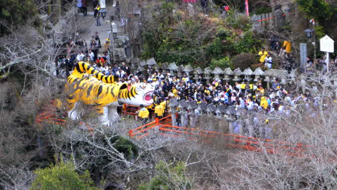 朝護孫子寺本堂舞台 六甲おろしの演技中 |